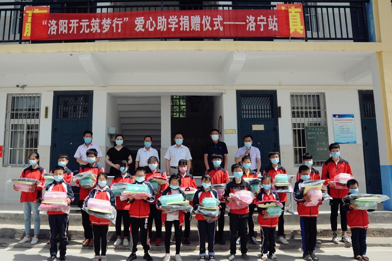 2020年5月27-29日,“洛陽(yáng)開元筑夢(mèng)行”愛心捐助活動(dòng)分別在欒川秋扒鄉(xiāng)中心小學(xué)、洛寧故縣中心學(xué)校、宜陽(yáng)蓮莊鎮(zhèn)政府舉行,共資助了61名貧困學(xué)生,累計(jì)捐款捐物近4萬元;