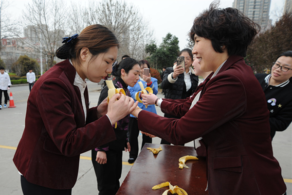 這次的運(yùn)動(dòng)會(huì)秉承著“團(tuán)結(jié)協(xié)作為主,娛樂放松并存”的主題,比賽的項(xiàng)目主要是綁腿往返跑,吃水果,擠氣球等一系列趣味性十足的項(xiàng)目。參賽的員工在比賽中積極競(jìng)爭(zhēng),團(tuán)結(jié)協(xié)作;場(chǎng)下的員工也是熱情吶喊,加油助威。上午的陽光略有寒意,但是員工們的熱情絲毫不減。掌聲、加油聲、歡呼聲一陣緊接一陣,路人也深受感染前來觀看,紛紛拿出手機(jī)拍照。(文:王利偉)