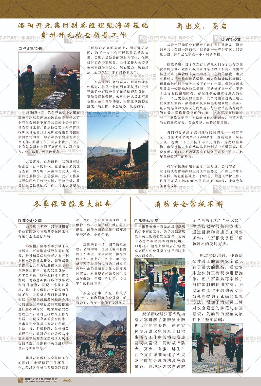 洛陽開元礦業(yè)集團有限公司簡介洛陽開元礦業(yè)集團有限公司,始成立于2006年,位于洛陽市開元大道269號。集團旗下共有十余家全資子公司,業(yè)務(wù)涉及有色金屬礦山開發(fā)、礦產(chǎn)品購銷與進(jìn)出口貿(mào)易、房地產(chǎn)開發(fā)、文化藝術(shù)、企業(yè)管理與咨詢、資本投資等多個領(lǐng)域。2024年,集團公司銷售總額達(dá)7.8億元。民建河南省委委員、民建河南省委企業(yè)委副主任、民建洛陽市委委員、企業(yè)委主任、洛陽民建企業(yè)家協(xié)會會長許明月是公司創(chuàng)始人,現(xiàn)任洛陽開元礦業(yè)集團有限公司董事長。在礦業(yè)領(lǐng)域,洛陽開元礦業(yè)集團擁有多家實力雄厚的子公司:貴州開元礦業(yè)有限公司探、采礦權(quán)面積共11.33平方公里;興海縣銅鑫礦業(yè)有限公司探礦權(quán)面積8.76平方公里,礦山資源潛力巨大;2021年,開元集團與盧氏中科礦業(yè)有限公司開展戰(zhàn)略合作。盧氏中科礦業(yè)有限公司專注于有色金屬的浮選、加工和銷售,擁有強大的技術(shù)支撐平臺,是集探、采、選、冶、研為一體的中大型綜合礦業(yè)企業(yè)。目前,盧氏中科王家河1000噸選礦廠已成功投產(chǎn),雙河金礦、柳關(guān)欒盧鉛鋅礦相繼順利開工,樓房銀礦與圪老灣鉛鋅礦的深部探礦重大突破,標(biāo)志著礦山版圖取得重大進(jìn)展,為開元集團后續(xù)發(fā)展奠定了堅實基礎(chǔ)。在文化傳媒領(lǐng)域,洛陽市明月美術(shù)館通過豐富多樣的藝術(shù)展覽、學(xué)術(shù)研討和公共教育活動,努力打造一個集展覽、交流、教育、研究為一體的綜合性藝術(shù)平臺。此外,在金融投資領(lǐng)域,開元集團旗下的北京明峰資本管理有限公司專注于投資具有高增長潛力的優(yōu)秀企業(yè),特別是高科技、新能源、環(huán)保等新興產(chǎn)業(yè),為客戶提供個性化的資產(chǎn)配置服務(wù)。在做好企業(yè)經(jīng)營的同時,開元集團始終不忘企業(yè)的社會責(zé)任和家國情懷,以突出的愛心公益事跡,開展了一系列公益慈善活動:“民建林”公益事業(yè)通過“思源基金”“幫幫公益”線上公益平臺,與眾多愛心人士籌措資金20余萬元;資助541名貧困大學(xué)生共計270余萬元,推進(jìn)“數(shù)字助力——河南AI人才培養(yǎng)”;捐款10萬元,馳援京津冀、黑龍江洪水地質(zhì)災(zāi)害……公司于2017年底被洛陽市慈善總會評為“洛陽慈善風(fēng)云榜——十大愛心集體”。洛陽開元礦業(yè)集團有限公司秉承持續(xù)發(fā)展理念,憑借多年來良好的企業(yè)信譽與經(jīng)營業(yè)績,與全國多家企業(yè)建立了良好合作關(guān)系,受到社會各界的一致好評,多次榮獲“納稅標(biāo)兵”“先進(jìn)企業(yè)”“招商引資模范企業(yè)”等榮譽稱號?;赝麃頃r路,開元人勠力同心,以“闖”的精神和“創(chuàng)”的勁頭,一路披荊斬棘,踏過千山萬水;展望新未來,開元人凝心聚力,不執(zhí)于“舊”,無畏于“新”,秉承“勇于跨越,追求卓越”的企業(yè)精神,乘著國家高質(zhì)量發(fā)展新征程的東風(fēng),跨過高山,越過大海,向著集團多元化、國際化的目標(biāo),逐夢遠(yuǎn)航,跨越前行!